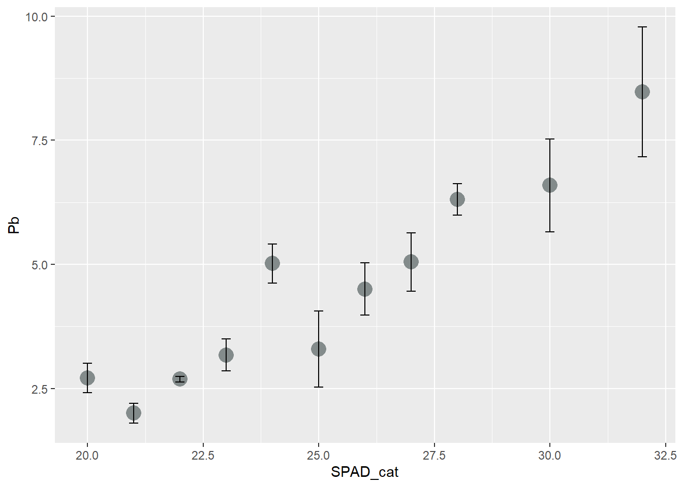 ggplot(HOJA, aes(SPAD_cat, Pb)) +
