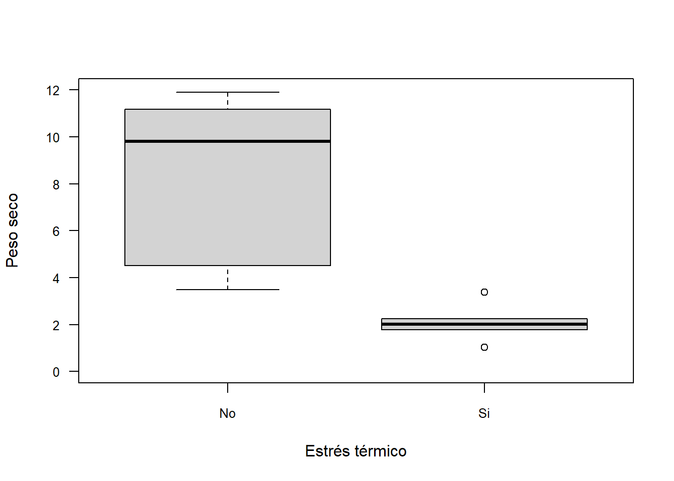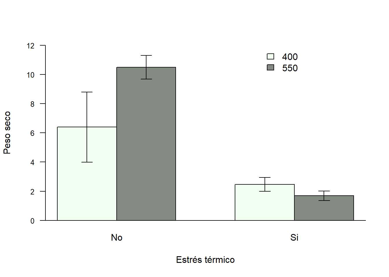Vemos que sin estrés térmico las semillas tenían mayor peso seco.