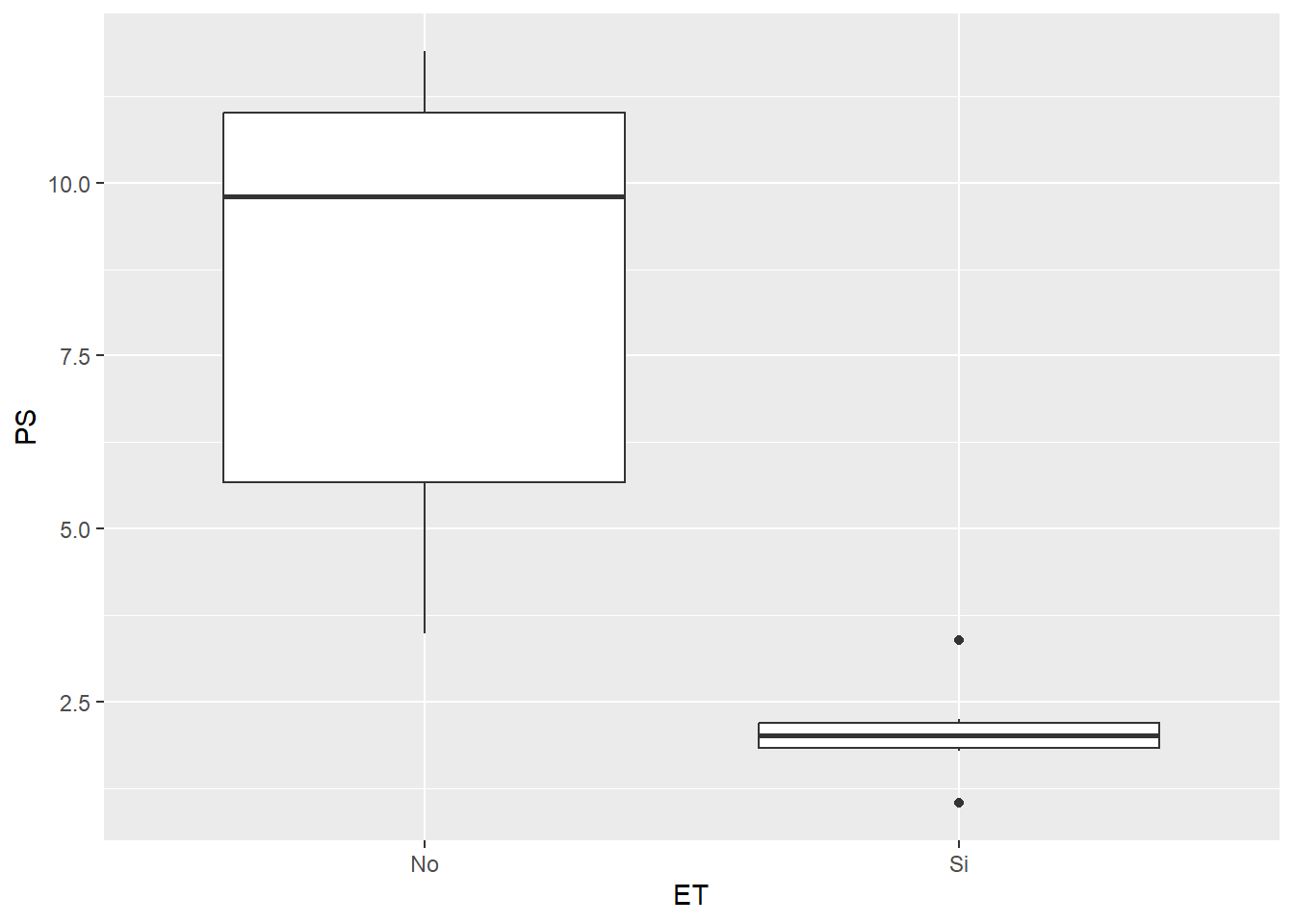 Vemos que el resultado del ANOVA es significativo únicamente para el factor ET, por lo que el modelo correcto sería el unifactorial. Sin embargo mostraremos los test a posteriori para el caso bifactorial: