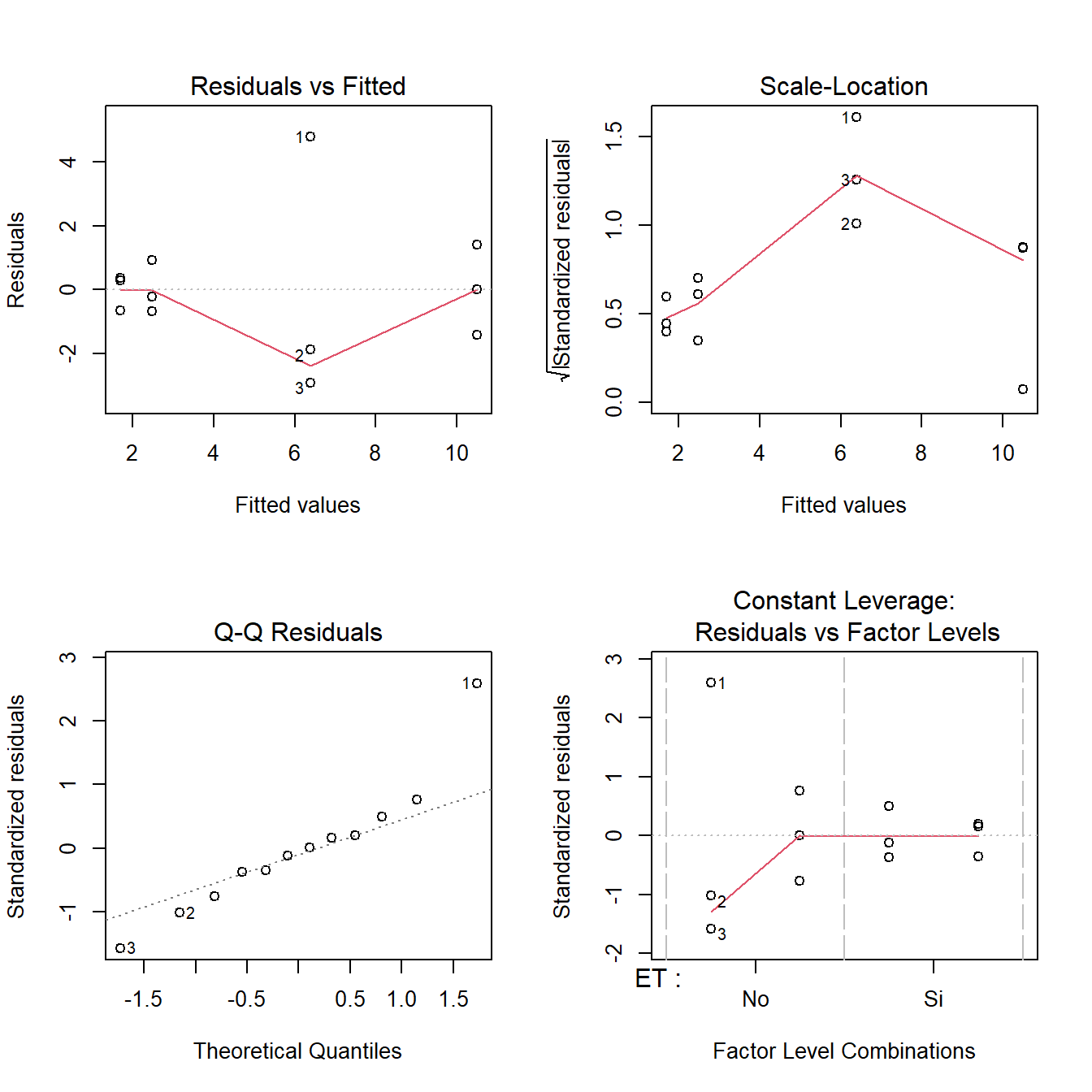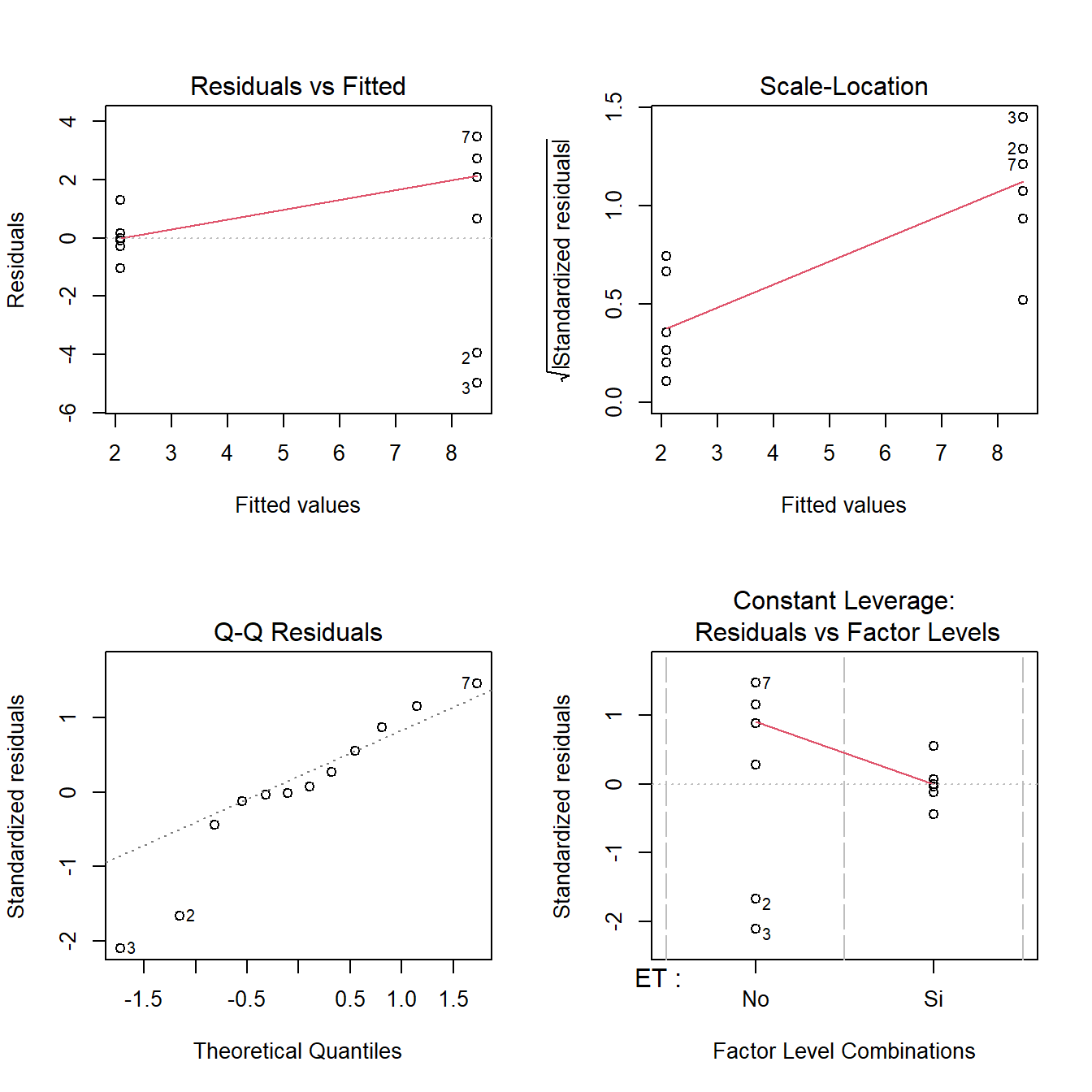 fit4 <-lm(PS ~ ET*CO2, data = SEM_Alim)De la misma manera que antes, probamos los supuestos: